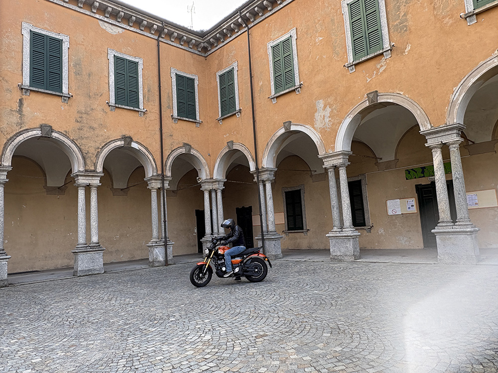 Un viaggio a due ruote in sella alla TVS Ronin alla scoperta di un piccolo gioiello lombardo tra archeologia, natura e architettura monumentale