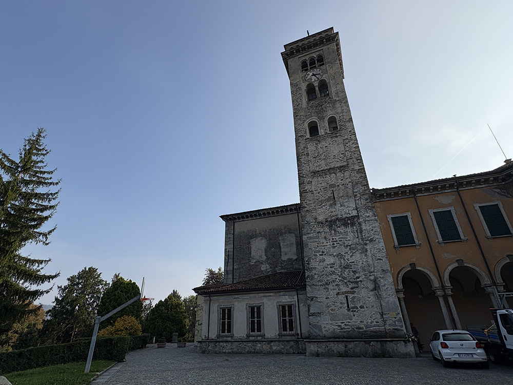 Questa è anche l’occasione per osservare da vicino la torre campanaria della Chiesa dei Santi Sisinio, Martirio e Alessandro. Costruita in stile romanico, la torre ha conservato la struttura medievale originaria; il suo paramento murario è formato da pietre tombali provenienti da sarcofagi romani.
